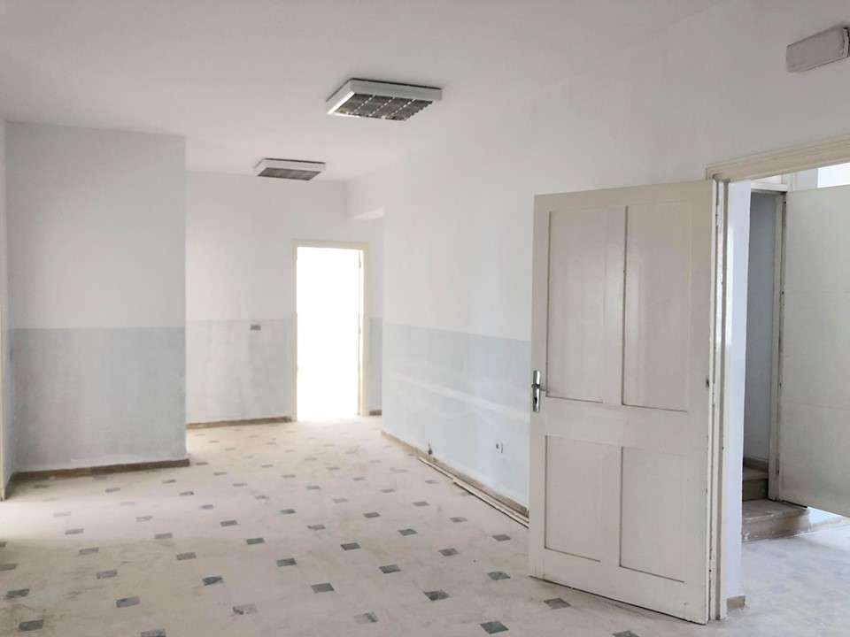 – 2 ème étage : 2 bureaux, 5 grandes salles, couloir, 3 points d’eau homme et 2 points d’eau femme.