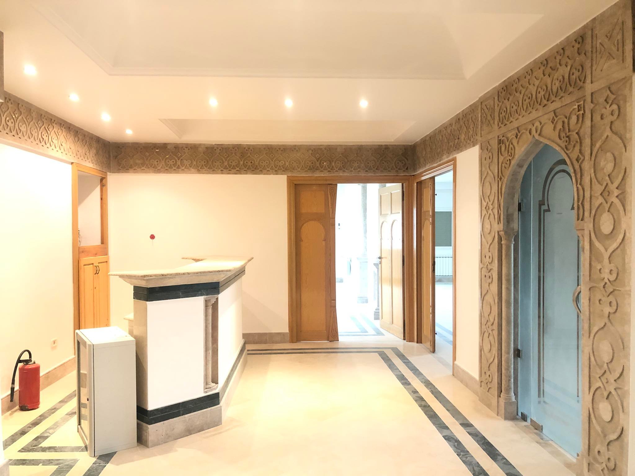 Le deuxième étage se compose d’un bureau de direction avec sa propre salle d’eau et kitchenette, trois pièces, une kitchenette et deux salles d’eau.
