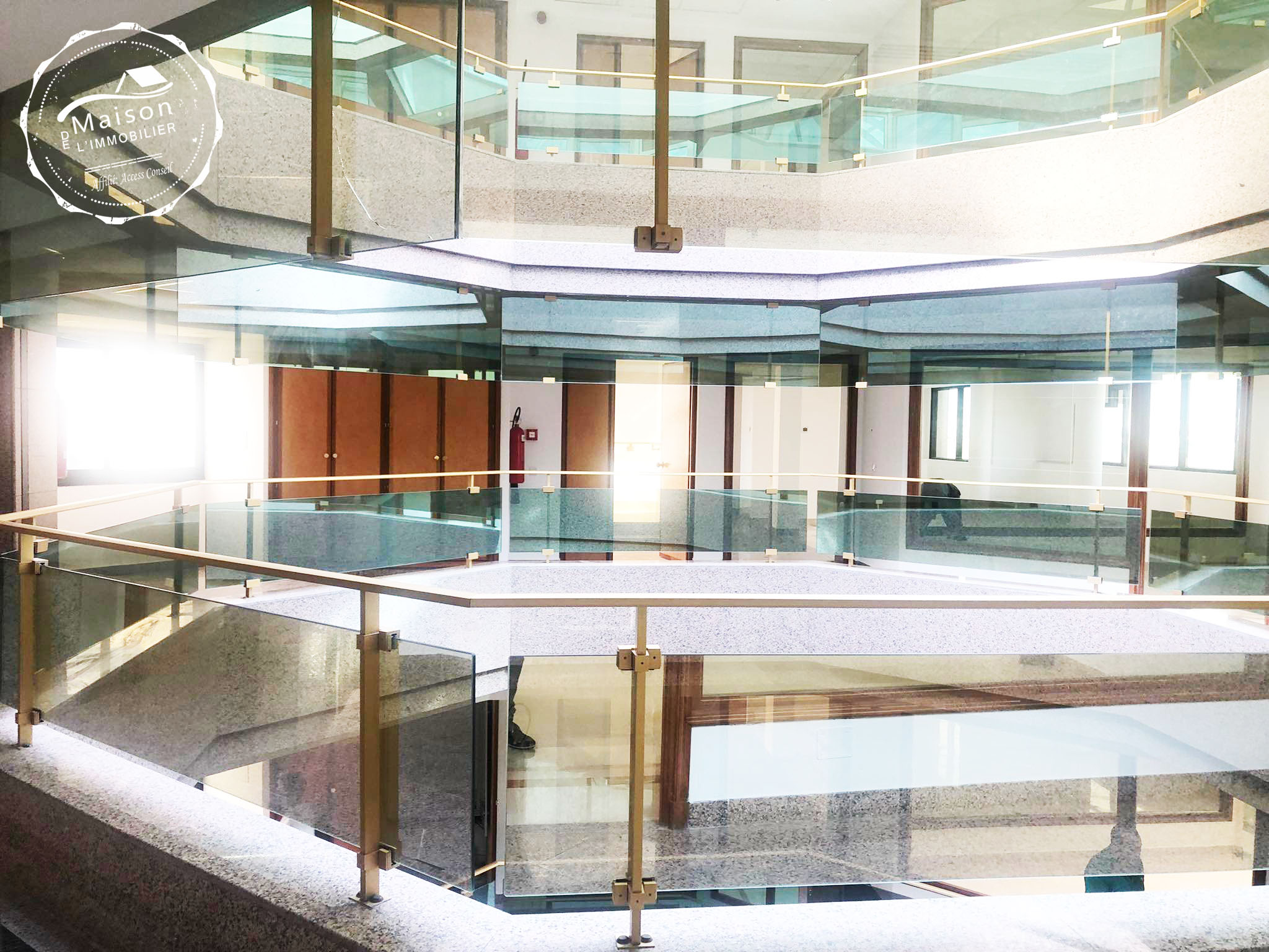 Le Rez de chaussée possède deux entrées en double hauteur, 9 pièces de bureau, une salle de réunion, 4 salles d’eau, deux locaux techniques et deux terrasses.