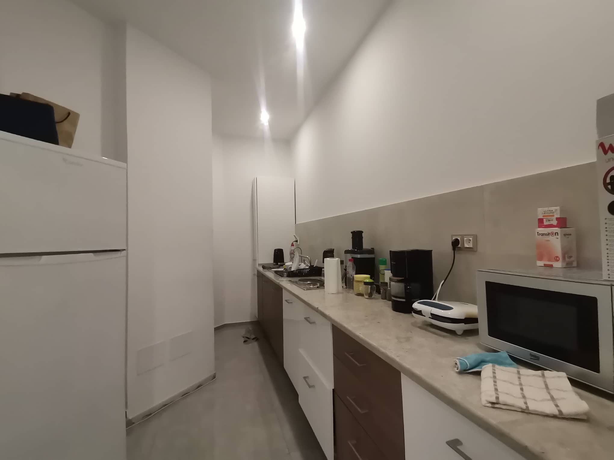 Cet espace de travail semi meublé, abrite un bureau d’accueil, un hall d’attente, un Local technique (serveur), 6 pièces de bureaux spacieuses et lumineuses, un Bureau de direction avec sa propre salle de douche, une cuisine équipée et 2 salles d’eau (Homme/Femme).