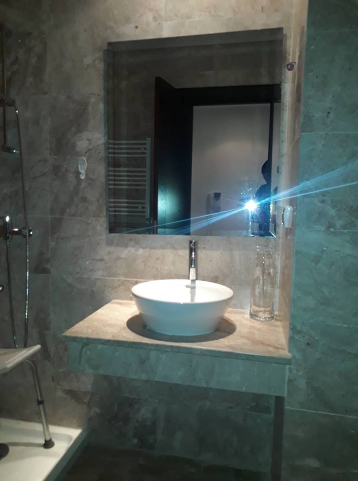 La pièce de vie tapissée de marbre blanc est conviviale à vivre avec un accès à un balcon qui offre une vue dégagée. La cuisine est équipée d’une plaque,d’une hotte, et d’un four et complétée par un séchoir exploitable. Une salle d’eau avec cabine de douche pour les invités est disponible. Des espaces de rangements sont disponibles à l’entrée.