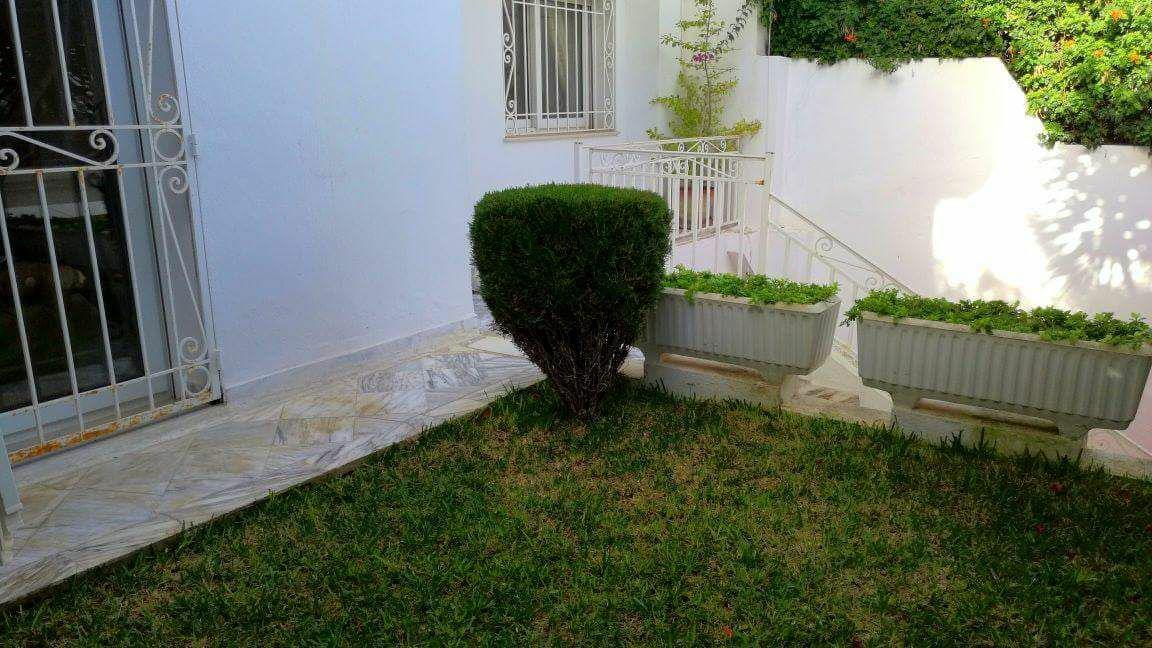 L’entrée ouvre sur un spacieux salon revêtu en marbre blanc lumineux grâce à ses ouvertures donnant sur un jardin de 30 m². La cuisine est aménagée par des espaces de rangement.Cette dernière est complétée par une terrasse. Un séjour ainsi qu’une salle d’eau complètent la partie jour.
